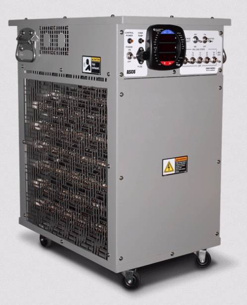 This 2700 series Load Bank is a portable, self-contained unit that simulates electrical loads. It is ideal for routine load testing of standby diesel generating systems at remote sites or for factory production line testing of (UPS) Uninterruptible Power Supplies, turbines, or engine generator sets. This model provides resistive loading up to 100 KW at either 240 or 480 Volts AC in a convenient, and easy-to-use package.
