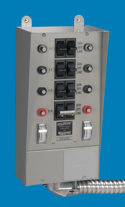 Easy to install and operate, connects portable generator to residential load center. Allows manual transfer of individual loads to prevent overloading generator. Each individual circuit can be transferred separately and only as needed. Now required by Article 702.6 of the 2002 National Electric Code to prevent inadvertent backfeeding of electric power from generator into utility system which can be a safety hazard.