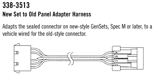 Adapts the sealed connector on new-style gensets, spec M or later, to a vehicle wired for the old-style connector.