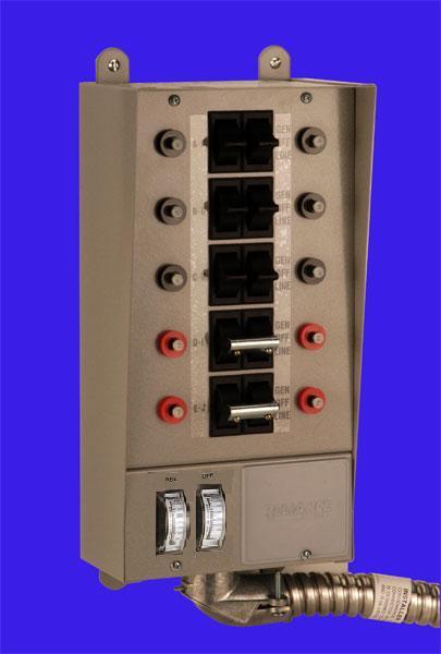 Easy to install and operate, connects portable generator to residential load center. Allows manual transfer of individual loads to prevent overloading generator. Each individual circuit can be transferred separately and only as needed. Now required by Article 702.6 of the 2002 National Electric Code to prevent inadvertent backfeeding of electric power from generator into utility system which can be a safety hazard.