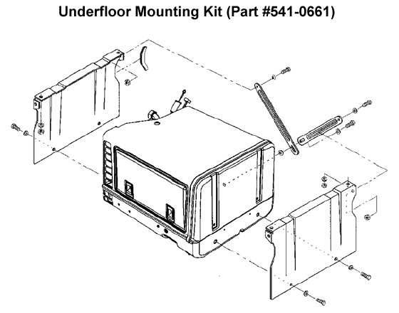 For underfloor installations. Brackets and hardware included. Travel trailer or fifth-wheel installations must be made in accordance with all applicable code requirements including ANSI A119.2, Section 2-10. Also refer to generator set installation
