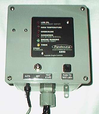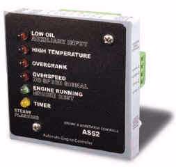 (identical to AS52 model)This unique control panel provides automatic start/stop and protection control for ALL TYPES of engine-driven equipment. It operates in a wide range of temperature environments and DC voltage ranges. However, if your operating voltage is 24VDC instead of 12VDC you must replace the output relay. Be sure to select the proper voltage using the dropdown menu when ordering so that relay will be included. If using the AS52 to start the generator on low battery voltage, connect a Voltage Controlled Switch or the Aux Relay on a Trace SW series inverter to the AS52 input.