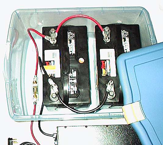 Cables are also long enough to make the connections if your batteries are installed in a protective box such as shown in the image above. If you use a box, make sure it is NOT air tight. Hydrogen gas can be generated if batteries are inadvertently overcharged. Use of some sort of protection is strongly recommended over your batteries since there is a danger of sparks, injury and fire if any metal object falls across the terminals of batteries. Be sure to follow all the battery manufacturer's safety precautions.