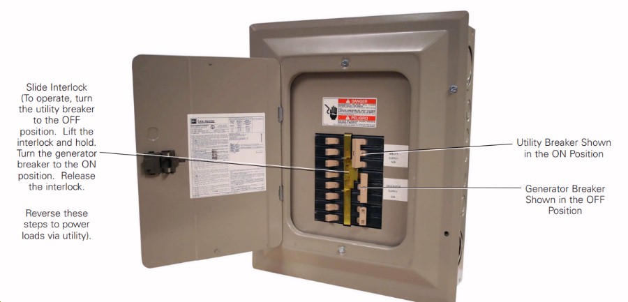 IntroductionThe Eaton 10 Circuit Manual Transfer Switch is intended to be used with Eaton generators but may be used with any generators. These Manual Transfer Switches are rated for 50 amp utility input and 30 amp or 50 amp generator input respectively at 240 Vac. These devices come equipped to power nine emergency circuits. There are eight single-pole emergency circuit breakers and one 2-pole emergency circuit breaker included.