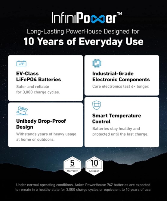 Long Life - InfiniPower's long-lasting technology, Anker PowerHouse 767 is built to last over a decade, even with everyday use.