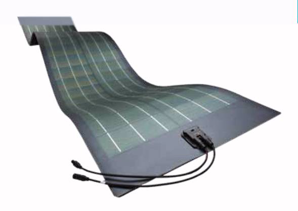 These solar cells are made from Copper Indium Gallium diSelenide (CIGS) thin-film solar on a flexible substrate in a plant in the USA.