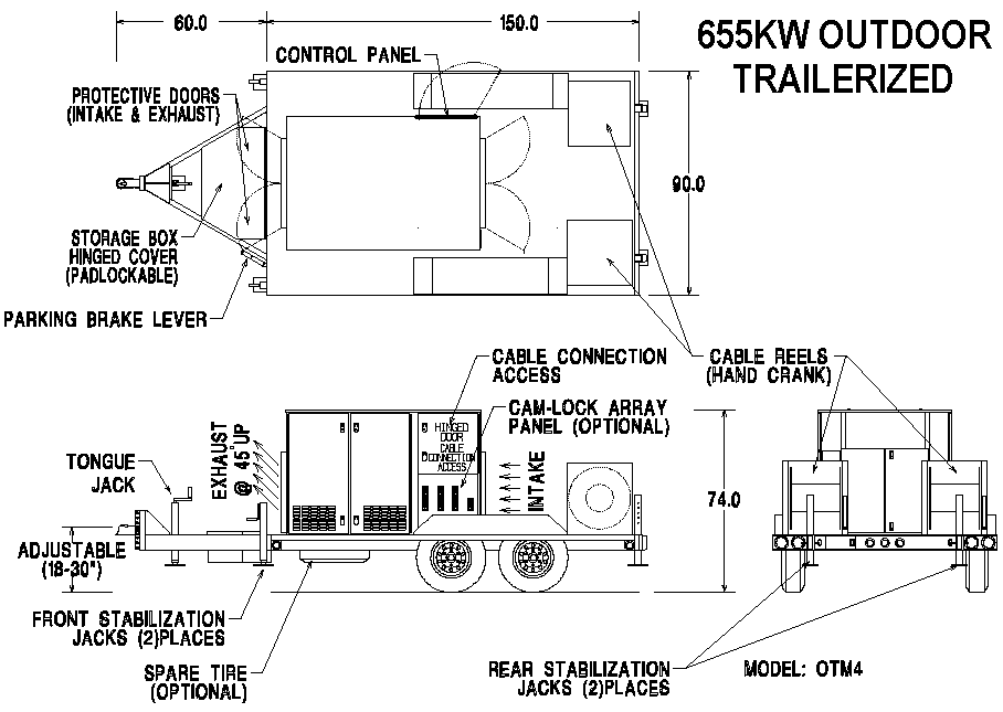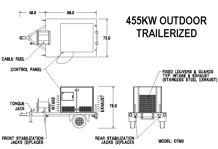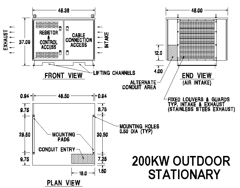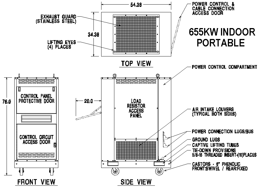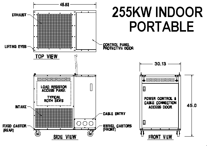 Large load banks are available by special quote and built to your requirements. These are available as AC or DC resistive, reactive, fixed mounted, trailer mounted or radiator/duct mounted.