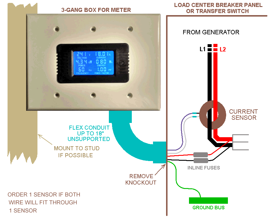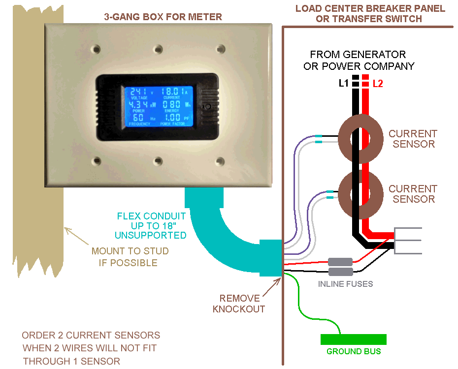 110-120Vac 50/60Hz up to 11kWDon't operate your backup or alternative electric power system blind, risking damage to your generator and/or appliances! Install this meter so you can see everything that is happening. Perfect for monitoring generator parameters when your transfer switch or panel does not have meters. The kW display will show if you are overloading the generator and the Voltage and frequency (Hz) displays can be used to verify the generator is operating properly. This meter works on 60 Hz North American power systems and 50Hz systems in other regions.