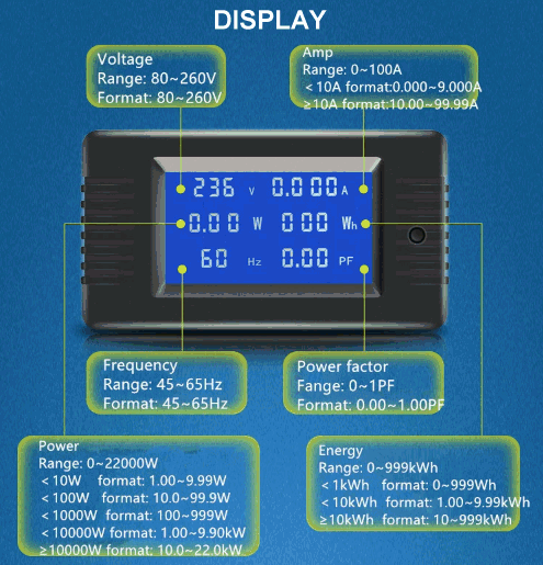 Unlike analog meters that can only be accurately read over a limited fixed range this digital power meter can display both small values of generator output AND large values.