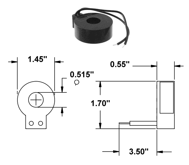 | Typical 120/240V installation with 1 sensor | Typical 120/240V installation with 2 sensors | Display | rear view | Sensor dimensions |