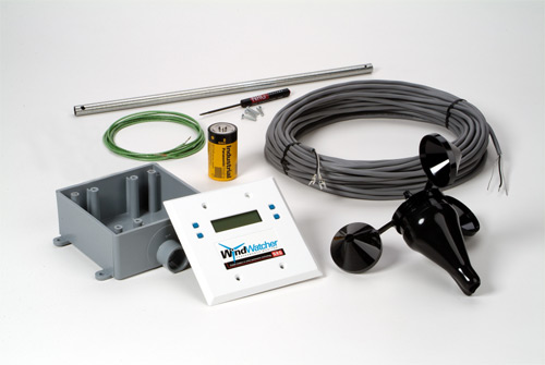 The WindWatcher includes a #40 anemometer, 30 m cable, 406 mm (16 inches) sensor stub mast, grounding cable, D-cell battery and enclosure.