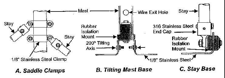 Tower hardware kit for AIR Marine grade wind generators. AIR Marine Tower Kits are designed for easy installation of the AIR Marine generators. The tower features built-in vibration reduction and all stainless steel hardware. The mast sets come either white powder-coated aluminum or stainless steel. Purchase both a Mast Set and a Hardware Kit for a complete tower, or just the Hardware Kit if you are supplying your own mast and stays.
