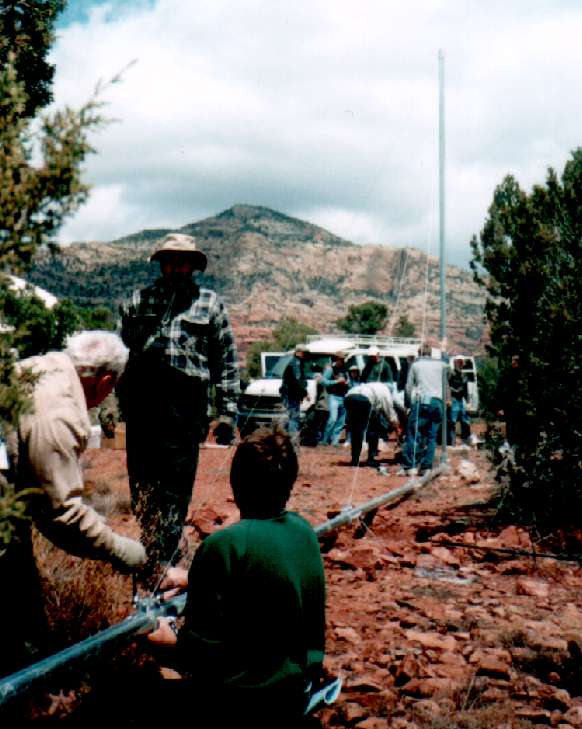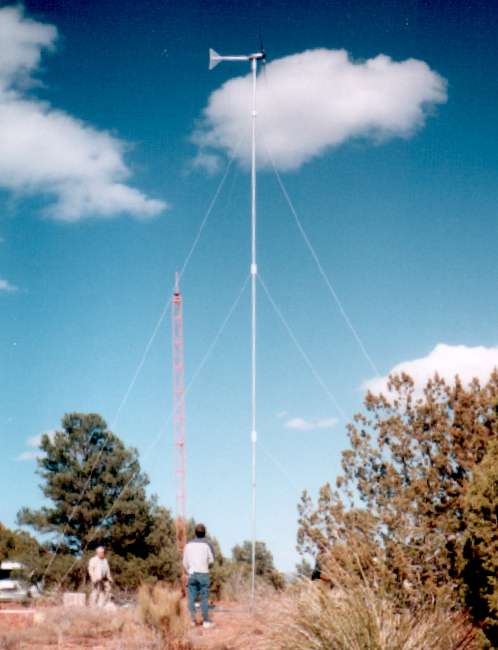 This page shows the installation of a Southwest Windpower H80 Wind Turbine on a 50 foot tower near Sedona, Arizona in April 2002. This installation was performed in less than a day by the workshop participants. Most had never installed a tower before. The photos and descriptions here do not show all the details. See the installation manual for complete details.