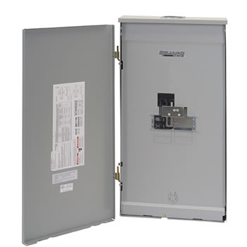 Standard features include NEMA 3R outdoor cabinet suitable for surface mounting, knockouts and hub provision for hard wiring and UL Listing. Service entrance rated which allows this to be connected directly to your power company meter. Provided with preinstalled main generator, 150 or 200 amp main utility breaker, with feed-thru lugs for connecting your load wiring. Also includes space for 4 to 8 single pole branch breakers or 2 double pole branch breakers. Meters for monitoring generator loading must be ordered separately and mounted external to this panel. Order inlet separately. Made in USA