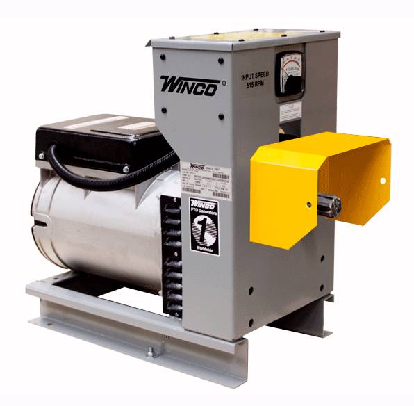Winco Compact DesignCompact PTO Generators are designed as a standby electrical power supply for farm applications or any site that has an engine with a power take-off. They can utilize a 12 to 40 hp power take-off from tractors, bulldozers, or trucks as the prime mover. Units are equipped with a single-stage gear box ratio design that operates generator at 3600 rpm for longer life, quieter operation, and smoother running. Read more about the uniqueness of Winco brand of PTO generators here.