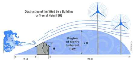 Proper site selection is very important to the performance and longevity of your wind turbine. A poorly sited wind turbine will bring nothing but poor performance, maintenance issues and frustration. For a wind turbine to operate effectively, it needs to be placed in good clean wind above obstructions which cause turbulence.